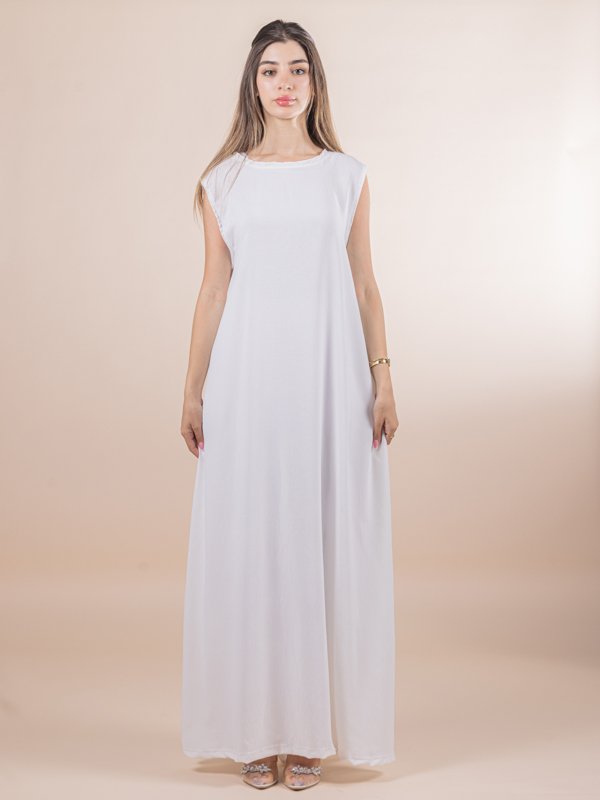 يأتي التصميم سادة بدون كسرات ليعطي شكلًا مرتبًا وانسيابيًا، مع قبة مدورة وقصة كت (بدون أكمام) تمنح حرية حركة وراحة أكبر، خاصة في الأجواء الدافئة أو عند ارتدائه تحت العبايات أو القطع الخارجية. خامة CY خفيفة وناعمة على الجسم، وتساعد على تقليل الشعور بالحرارة.